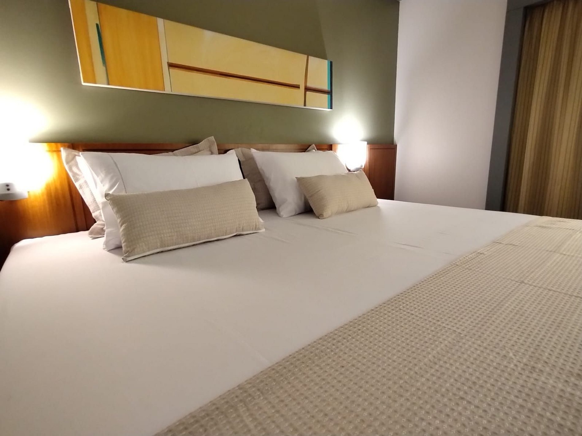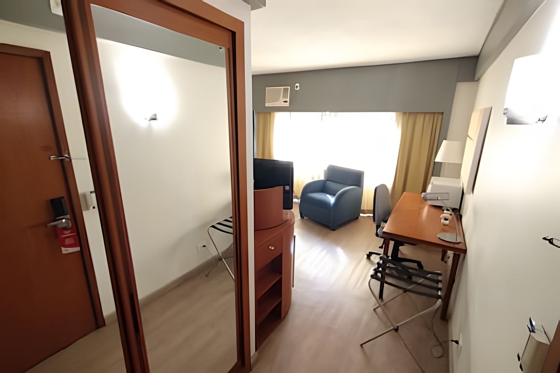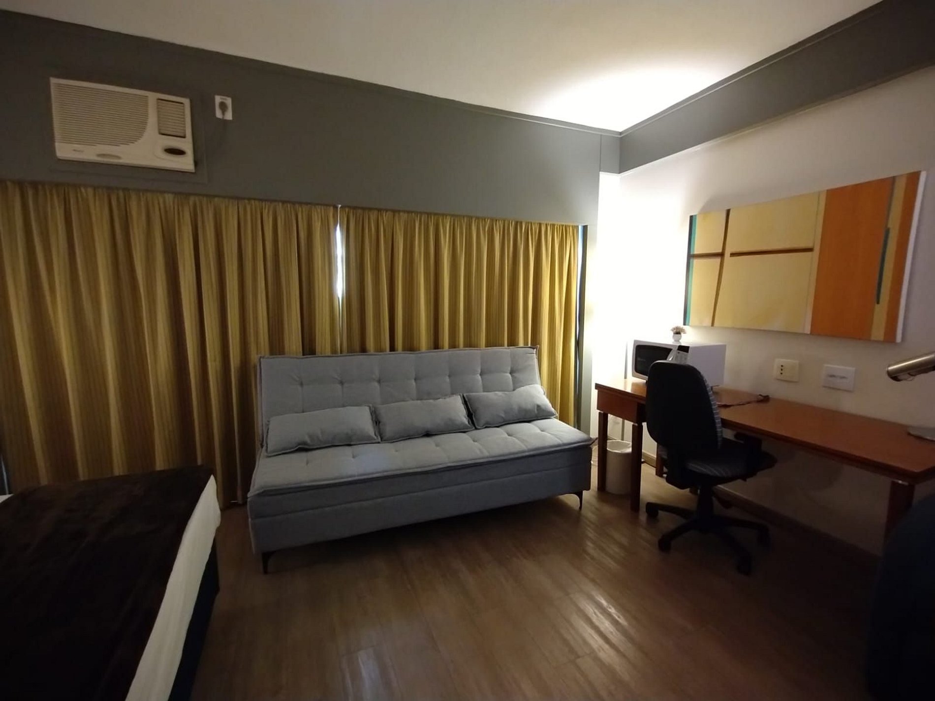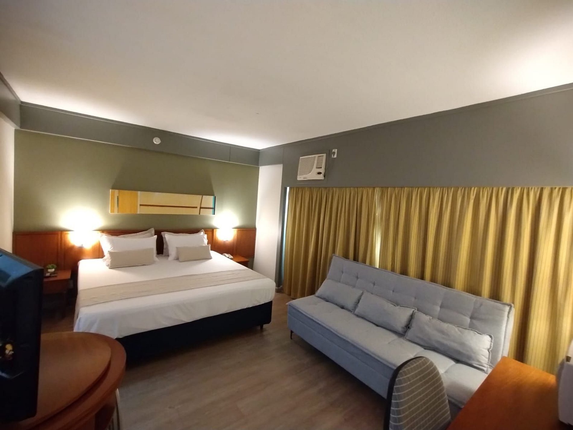 O quarto é equipado com cama de casal super King, sofá cama, micro-ondas, frigobar, TV, ferro de passar roupa, roupa de cama e banho, limpeza diária. Acomoda até 4 adultos. Estacionamento grátis com manobrista. Recepção 24 horas. Café da manhã não incluso.