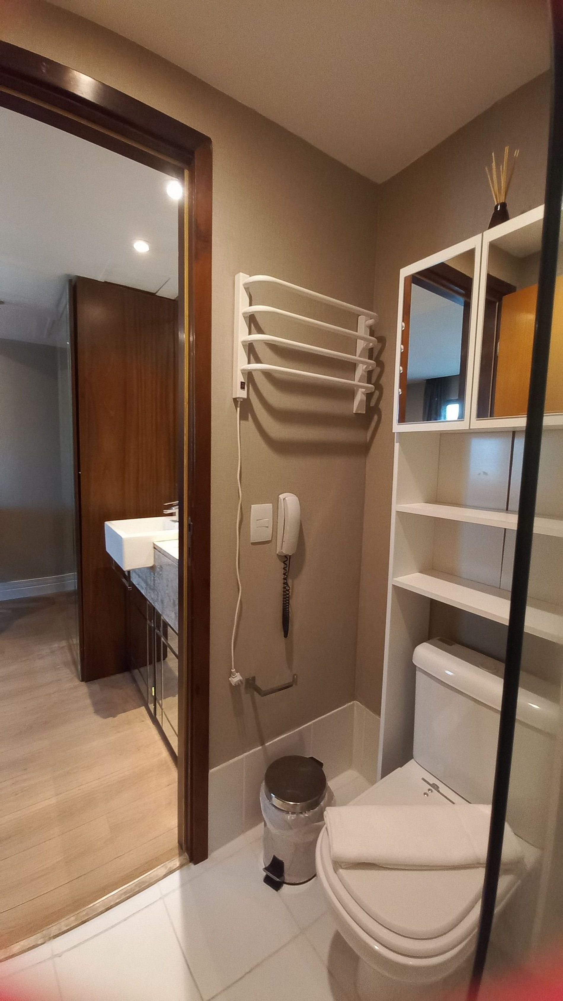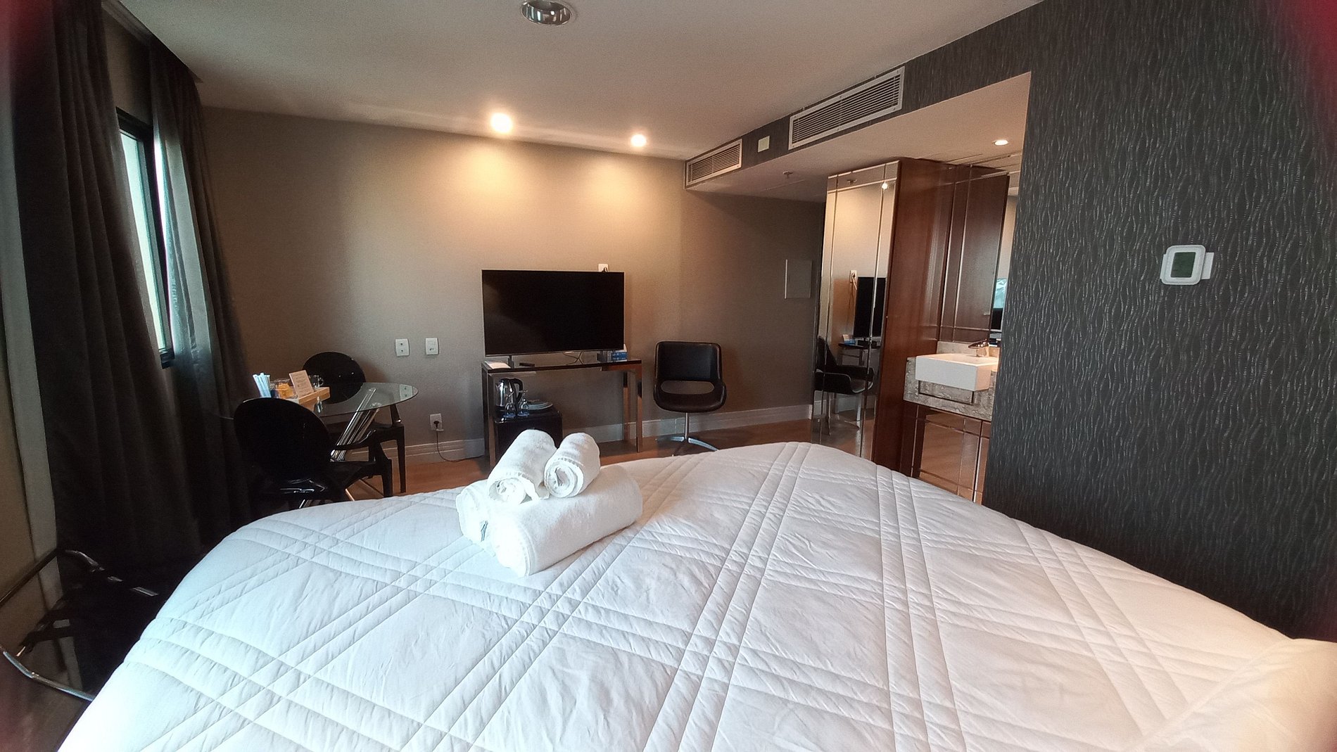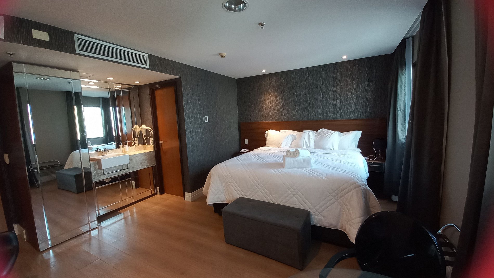 Pensado para atender às necessidades do viajante corporativo, este flat proporciona uma experiência sofisticada, aliando conforto, funcionalidade e eficiência. Desfrute de comodidades de alto padrão que proporcionam relaxamento total. Descanse em uma espaçosa cama King Size com lençóis de algodão 300 fios oferecendo qualidade para noites de sono revigorantes após um dia intenso de trabalho e compromissos. Aqui você encontra o equilíbrio perfeito entre trabalho e bem-estar.