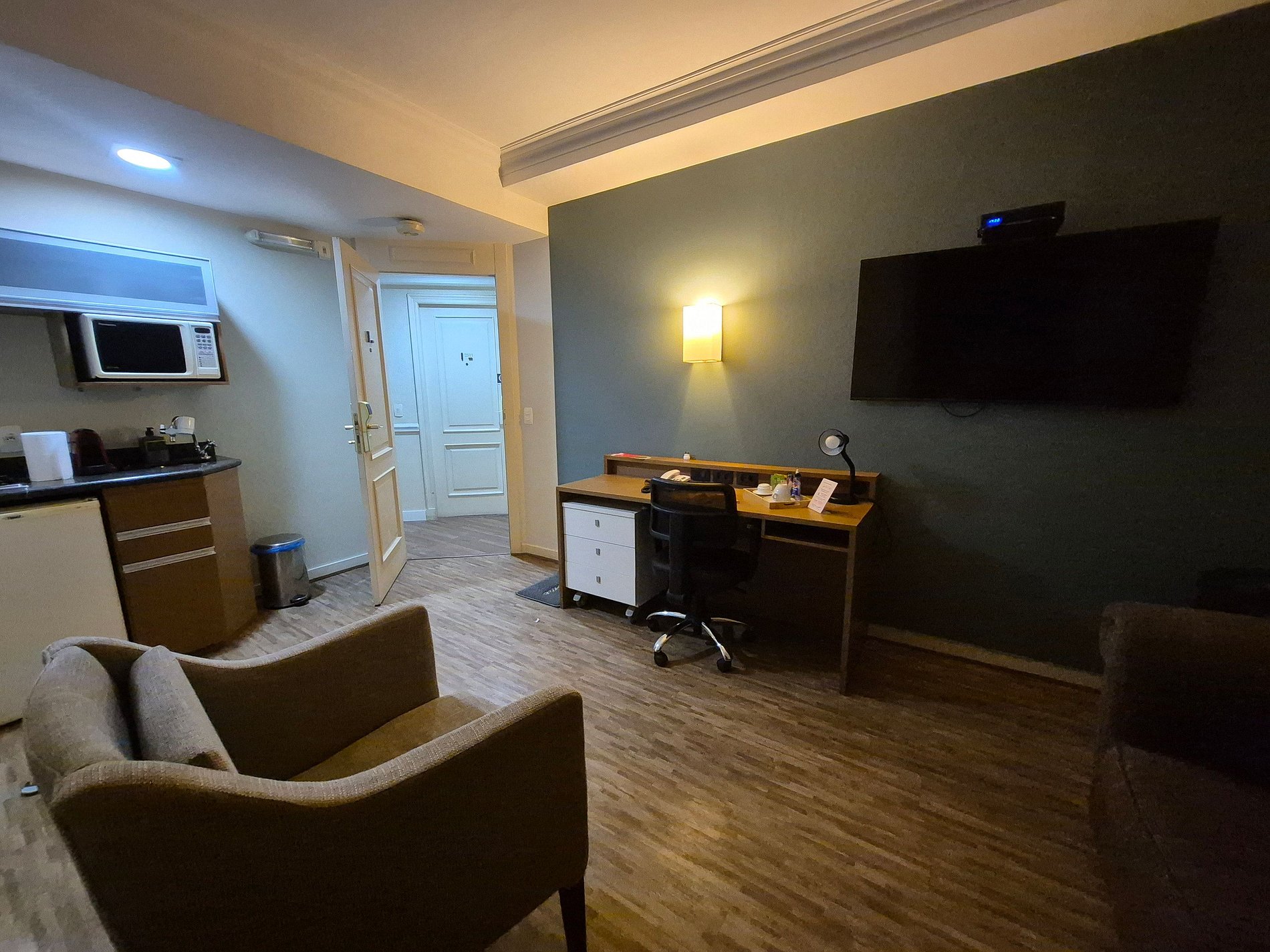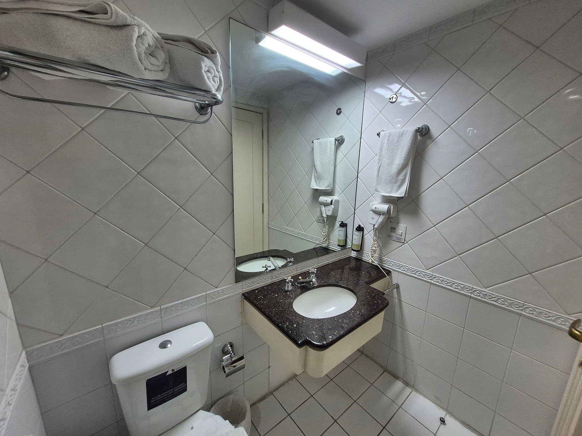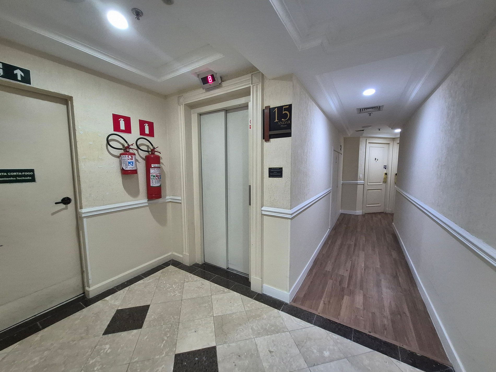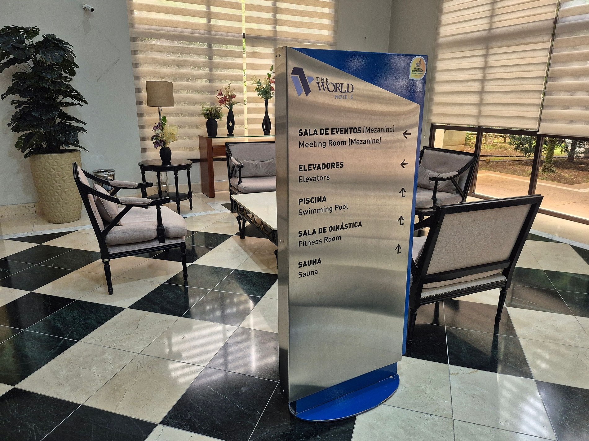 É necessário se identificar na recepção do hotel e informar o número do quarto para retirar o cartão de acesso à acomodação. A recepção é 24 horas.