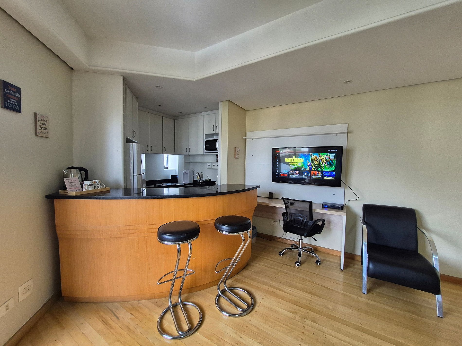 Localização privilegiada na Av. Sena Madureira. Quarto com cozinha, TV, cama casal, enxoval completo, 1 vaga de estacionamento com manobrista. Café da manhã não está incluso podendo ser contratado diretamente com o hotel.