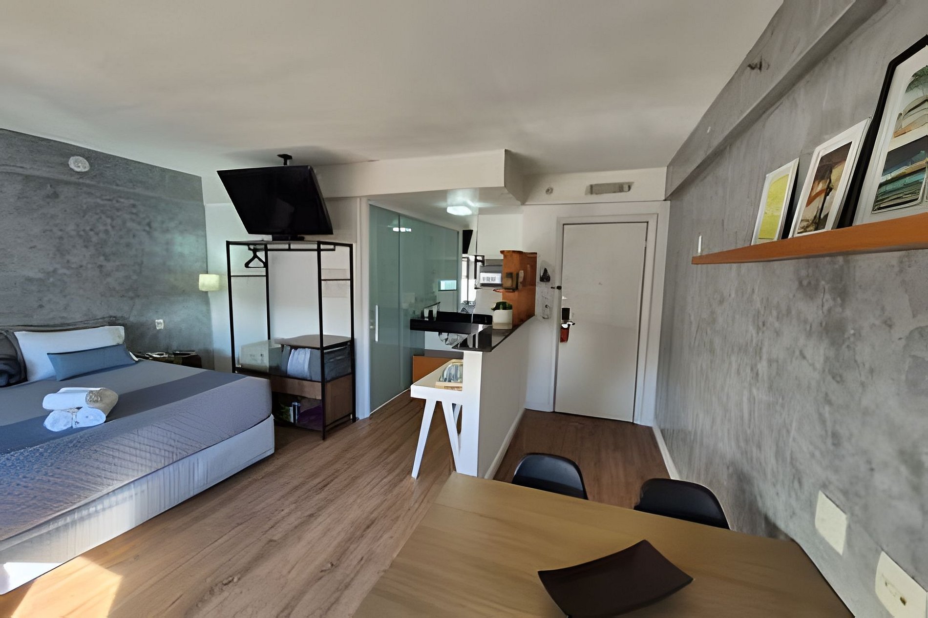 Flat particular reformado localizado na rua Borges Lagoa 1179. Região com fácil acesso à shoppings, hospitais, padaria em frente, comércio, restaurantes, metrô, parque Ibirapuera, aeroporto Congonhas. Ótima localização! Quarto equipado com cama de casal King, micro-ondas, frigobar, TV, chaleira elétrica, ferro de passar roupa. Incluso enxoval. Estacionamento grátis. Recepção 24 horas. Café da manhã não incluso. Proibido fumar na acomodação. Sujeito a multa.